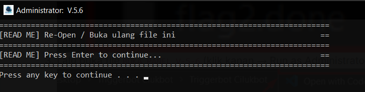 Triggerbot V6(klik kanan → Run as Administrator). - Tunggu sampai optimize selesai, jika muncul teks seperti dibawah, silahkan klik