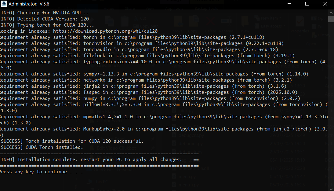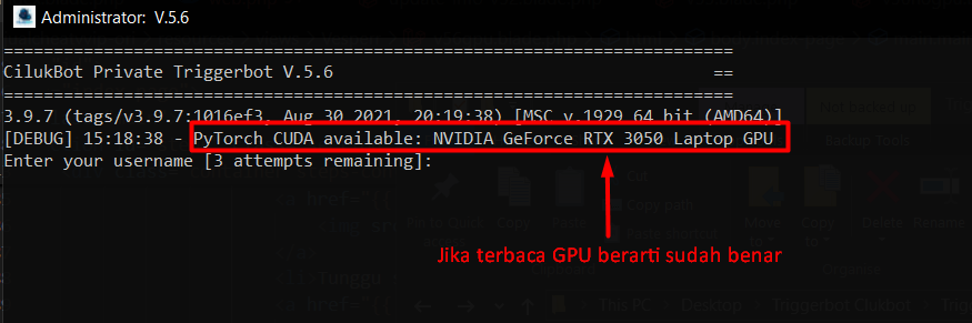 Triggerbot V6(klik kanan → Run as Administrator). - Setelah tampil penginstalan CUDA selesai restart PC kamu