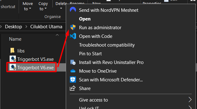 Triggerbot V6(klik kanan → Run as Administrator). masukan username yang
